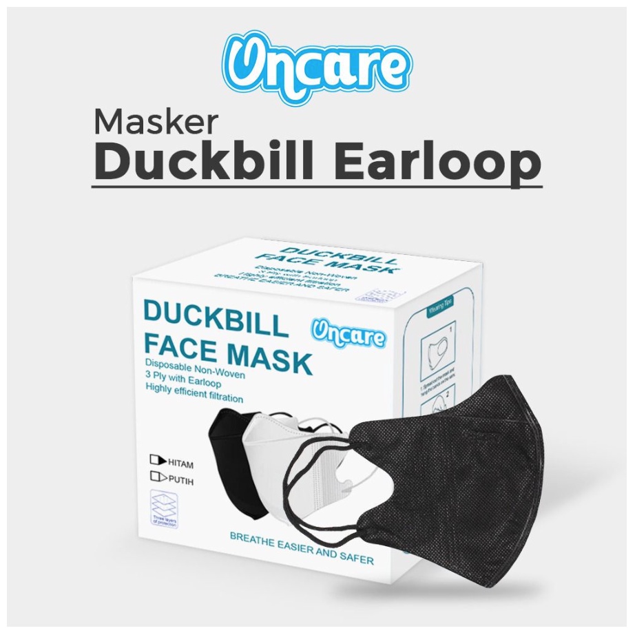 - Masker pelindung wajah dengan desain model Duckbill Face Mask Earloop (dikaitkan langsung di telinga)