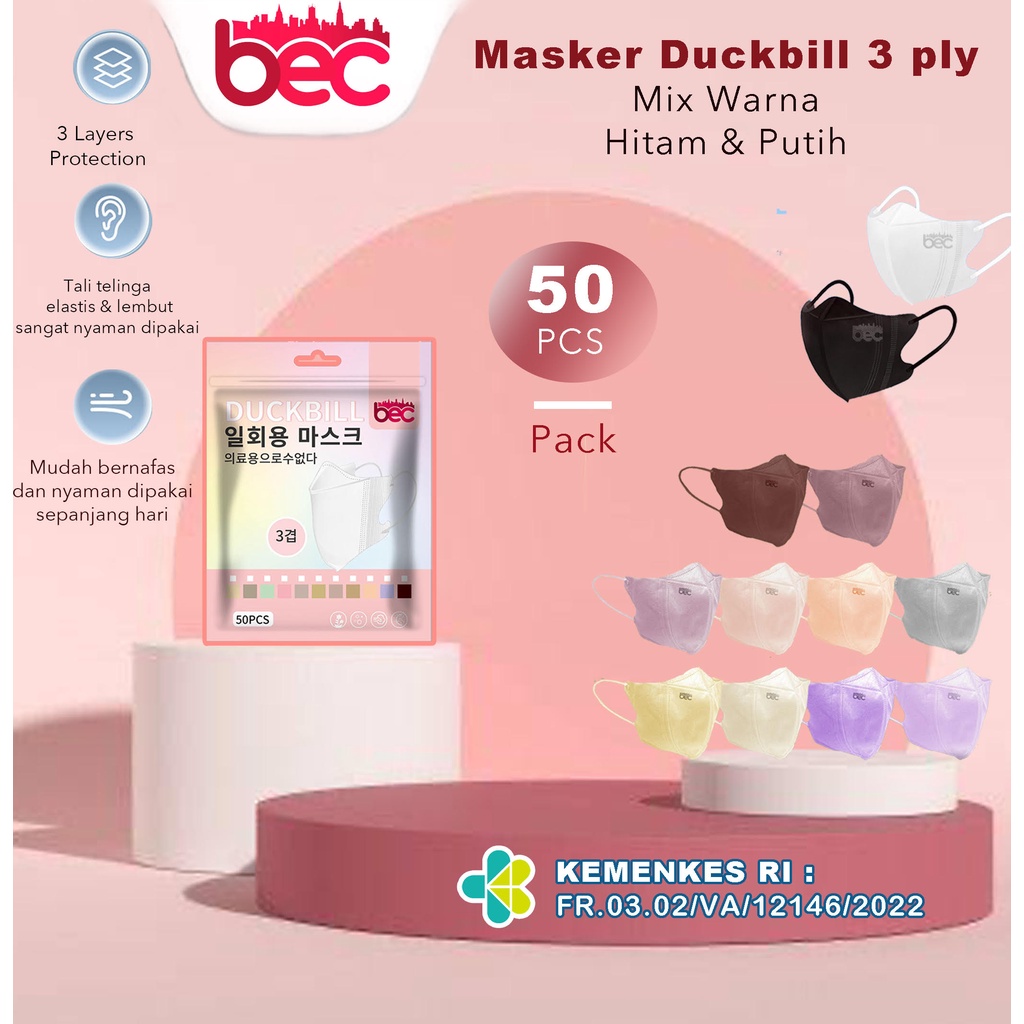 Review Tentang [BEC] MASKER DUCKBILL 50 Pcs MASKER DUCKBIL 3PLY MIRIP SENSI MIX WARNA WARNI PUTIH DAN HITAM FACE MASK EARLOOP MEREK BEC HOUSE Secara Lengkap Dan Detail